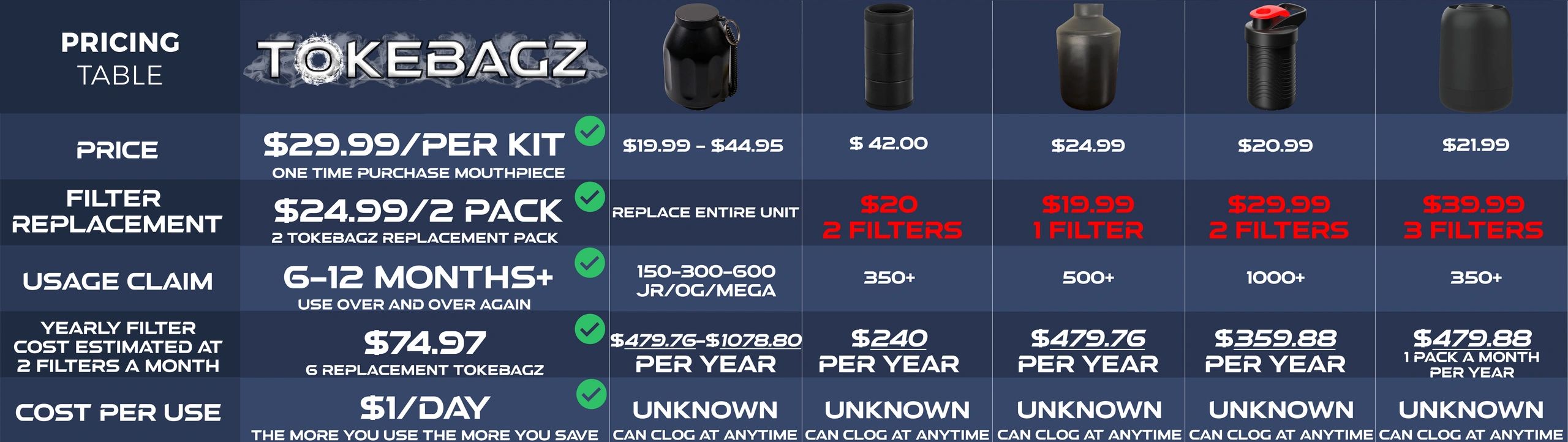 TokeBagz is here to collect your delicious tokes. No refills, no clogged filters, no need to rotate between multiple filters, no difficulty blowing through the clogs, no buying replacement filters ever again!